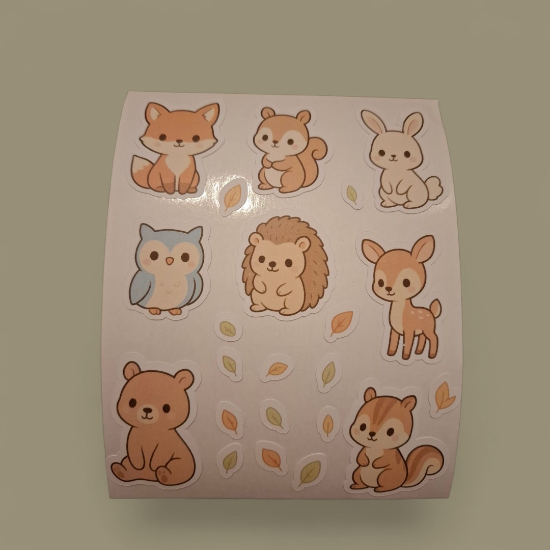 De bosdiertjes stickers zijn mat en in pastel kleuren.