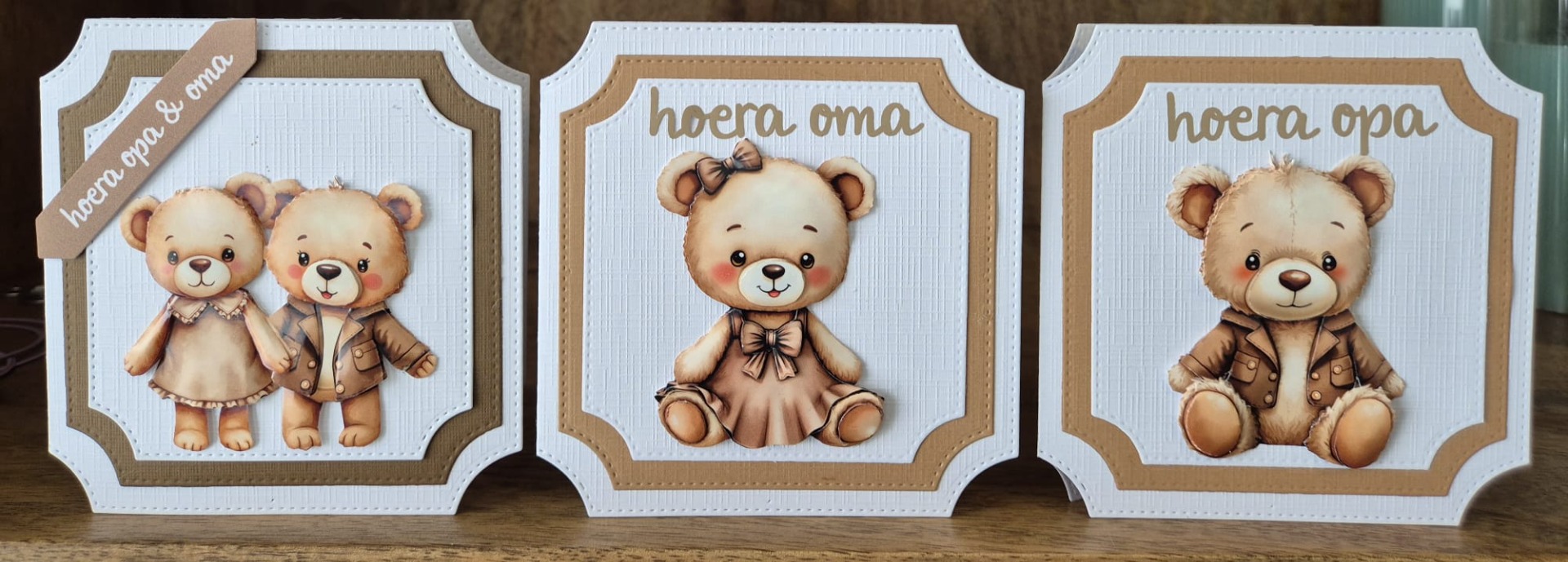 Dit pakket Opa en Oma bevat al het materiaal voor het maken van deze 3 kaarten