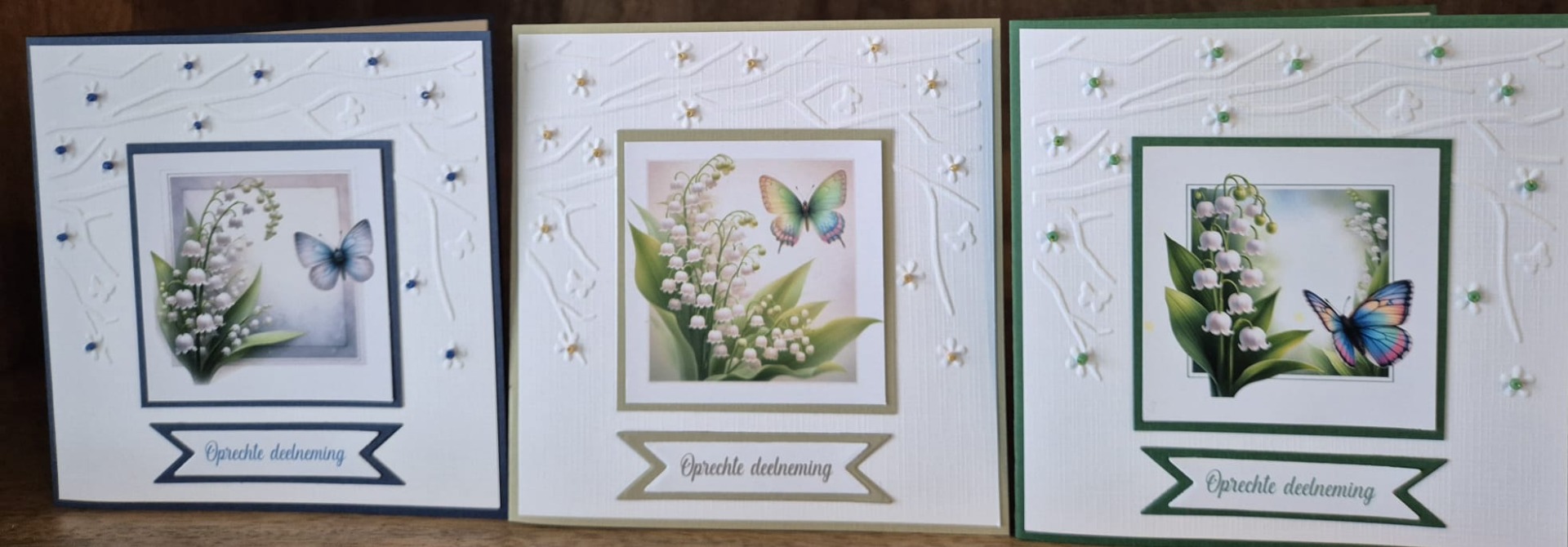 Pakket deelneming bevat al het materiaal voor het maken van deze 3 kaarten,