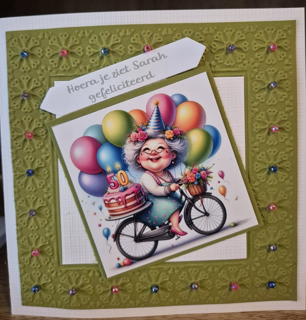 Dit pakket Sarah bevat al het materiaal voor het maken van deze kaart