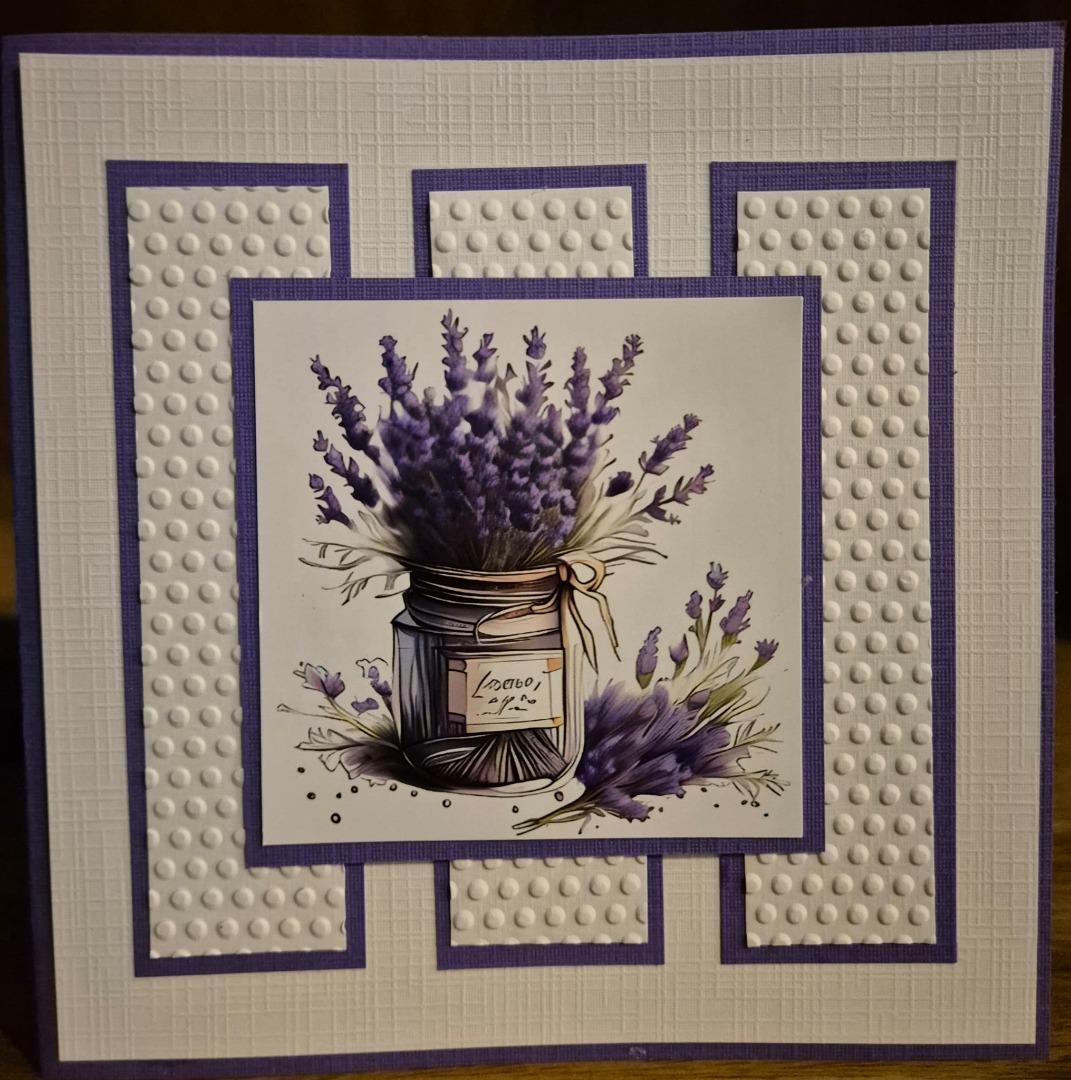 Dit pakket Lavendel  bevat al het materiaal voor het maken van deze kaart,
