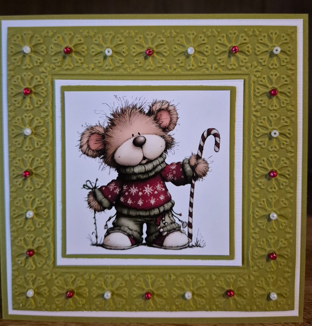 Dit pakket kerstbeer bevat al het materiaal voor het maken van deze kaart