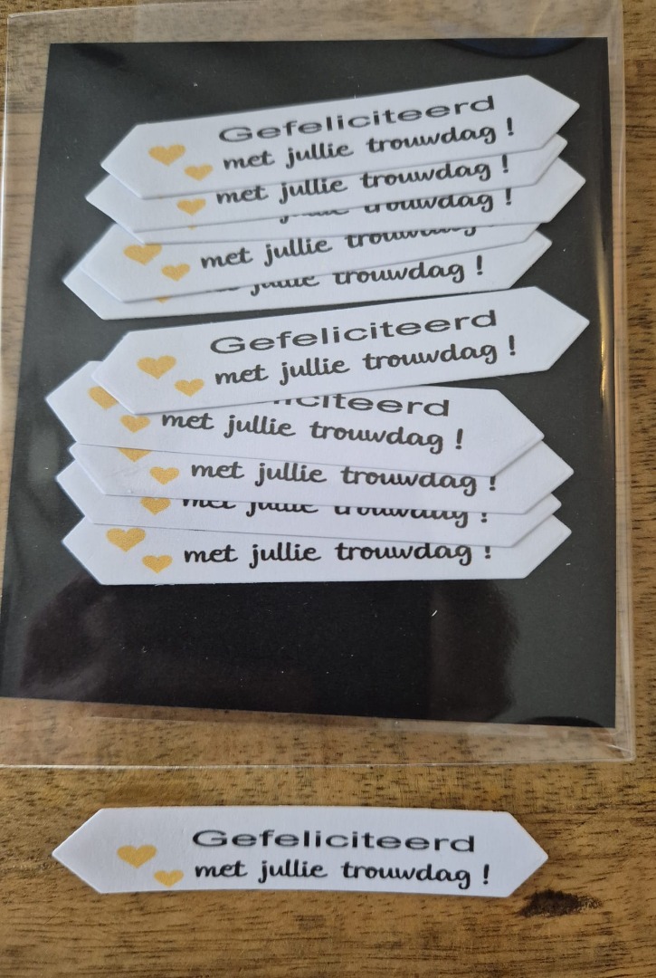 De losse LT trouwdag zijn met zwart bedrukt op 160 grams papier